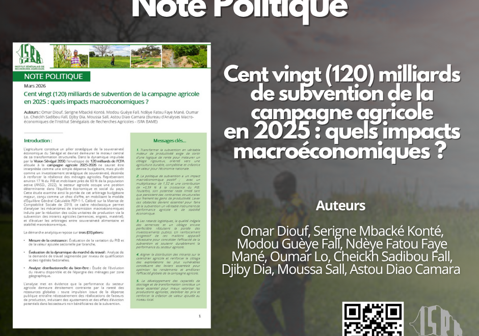 Ainsi, l’ISRA-BAME s’affirme comme un acteur clé produisant des évidences scientifiques robustes, indispensables pour orienter efficacement la transition agroécologique au Sénégal.